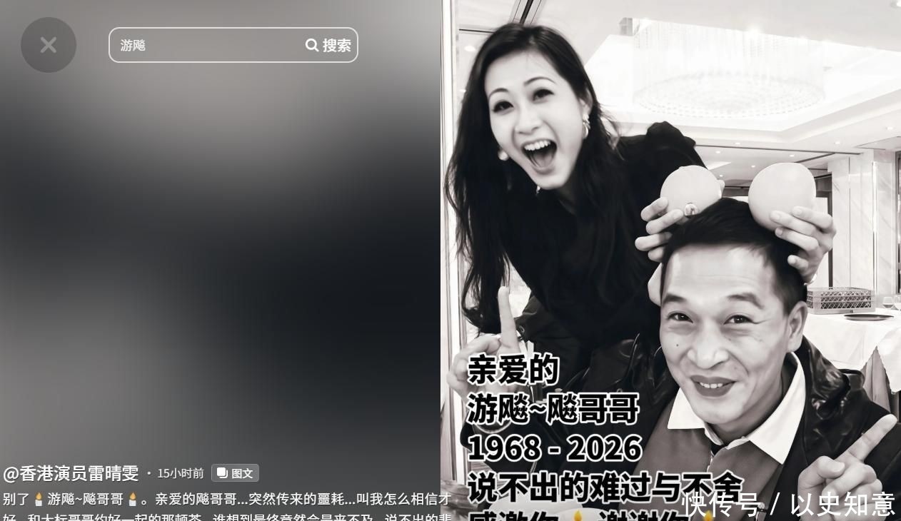 曾活跃于TVB荧屏二十余载的实力派演员游飚,因突发性脑干出血,经连续12昼夜全力救治仍未能挽回生命,于当晚离世,享年57岁。