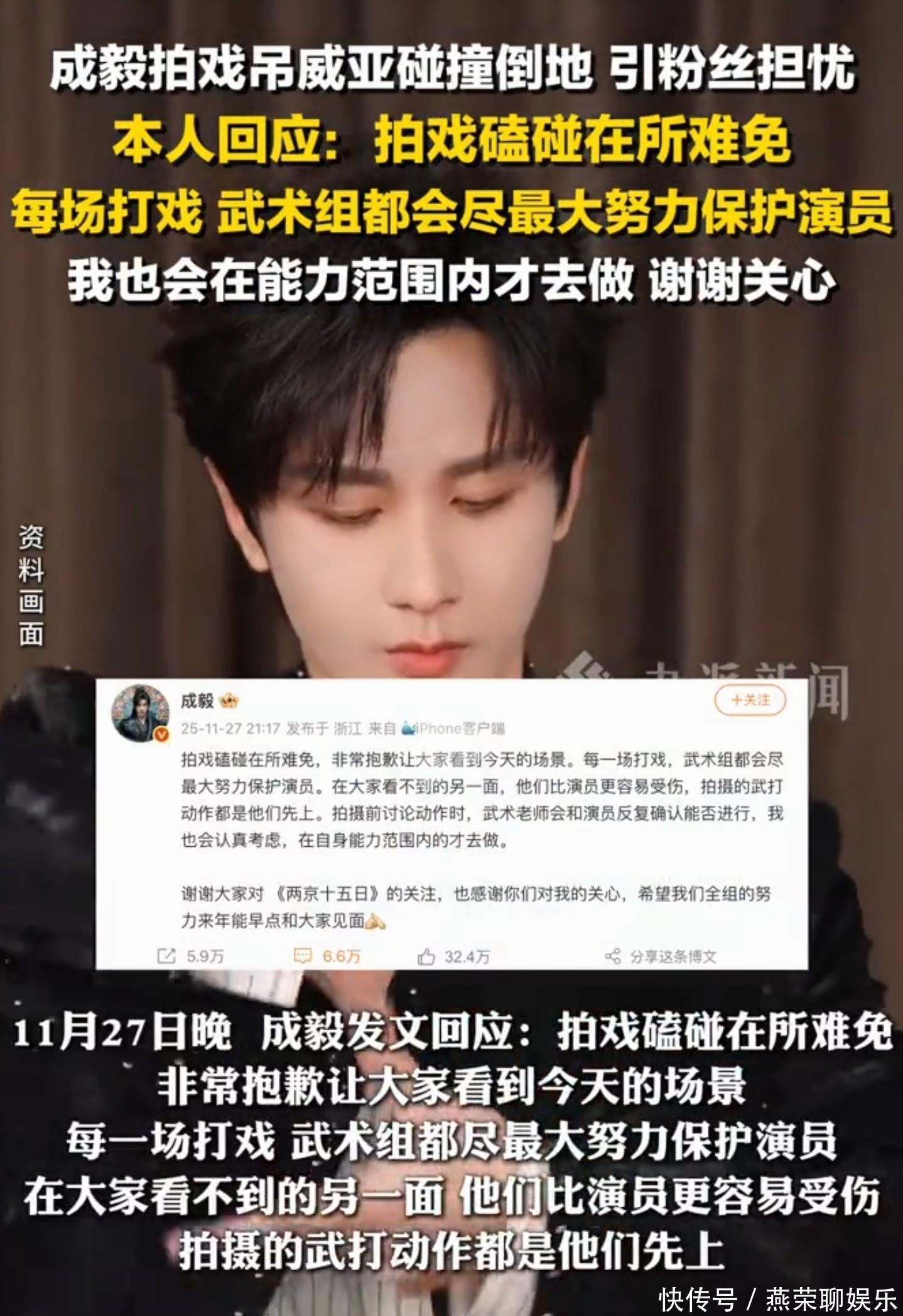 随后,成毅本人也在社交媒体上发文回应此次受伤事件。他诚恳地表示,拍戏磕磕碰碰在所难免,让大家看到这样的场景他感到十分抱歉。同时,他还提到了剧组的武术组工作人员,称他们在拍摄武打动作时总是冲在前面,其实比演员更容易受伤,言语中充满了对武术组的理解和感激。深夜时分,剧组也转发了成毅的微博,并发布了正式的致歉声明。剧组对关心成毅的朋友们表达了感谢,同时对此次拍摄中发生的意外向成毅致以最深的歉意。剧组承诺,会密切关注成毅的身体状态,将演员的健康安全放在首位。并且表示会以此次事件为深刻的教训,全面加强剧组的安全规范措施,从设备检查到人员培训,全方位保障每一位演职人员的安全。