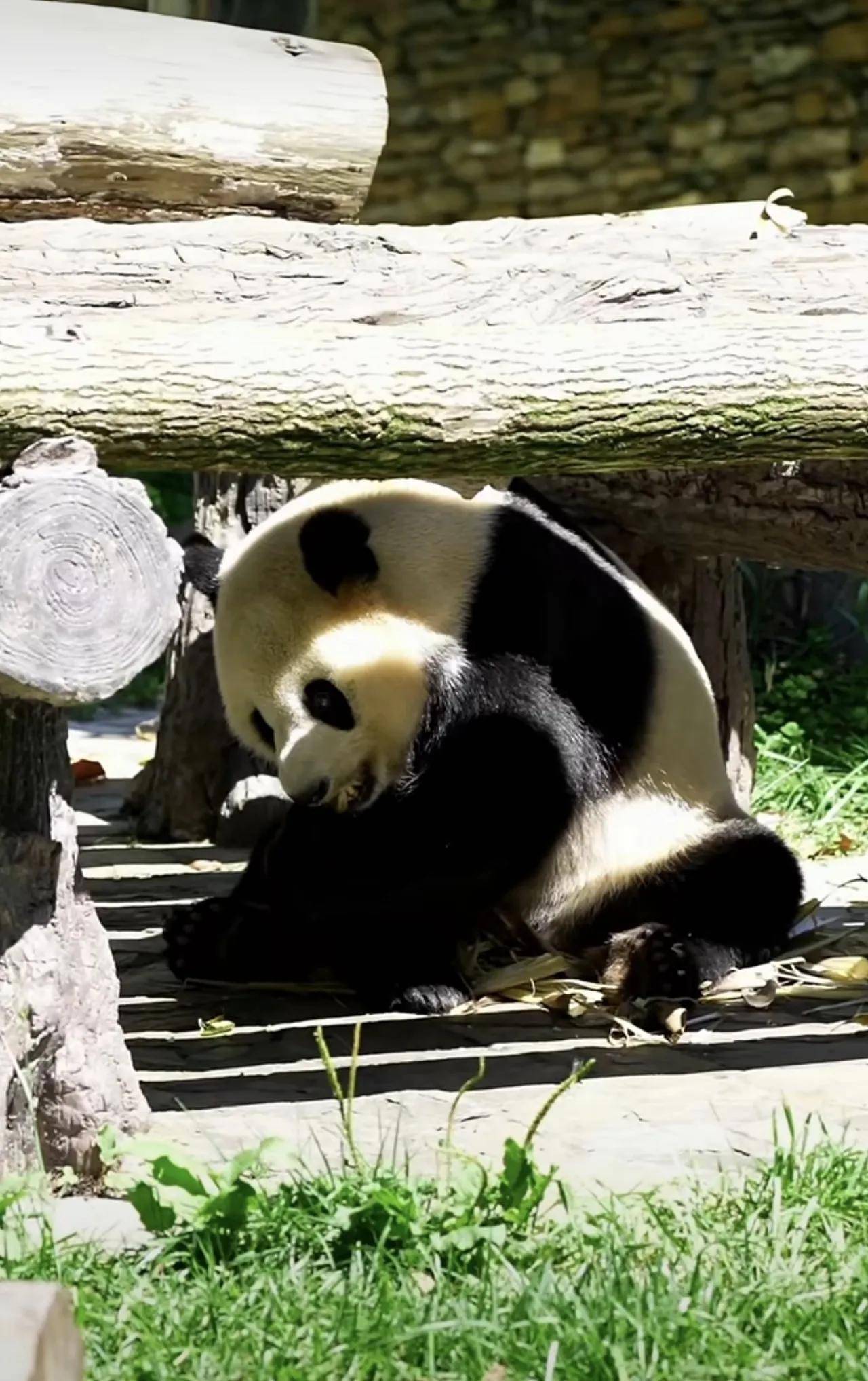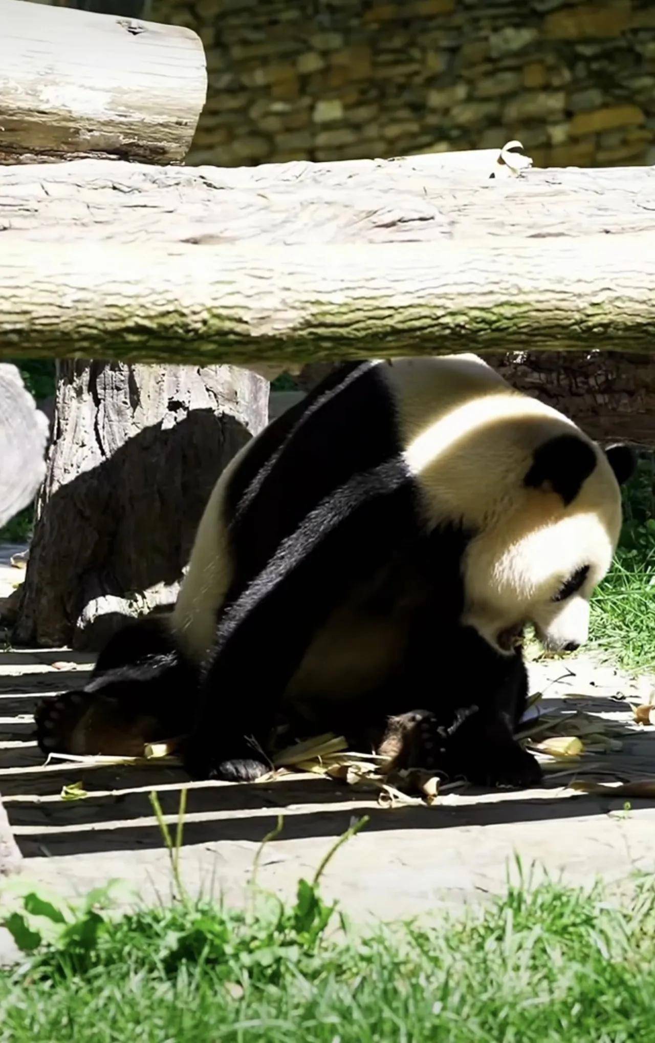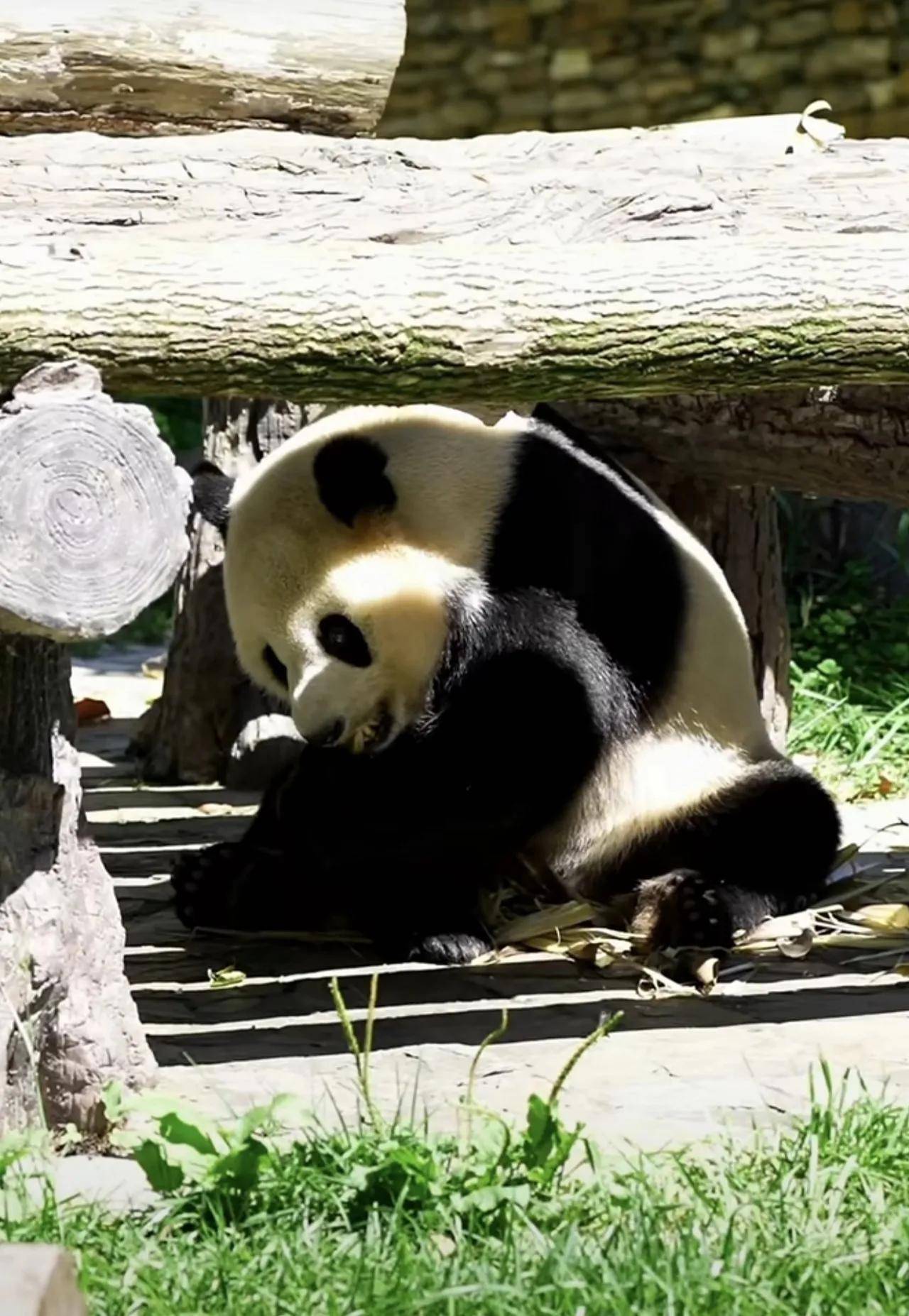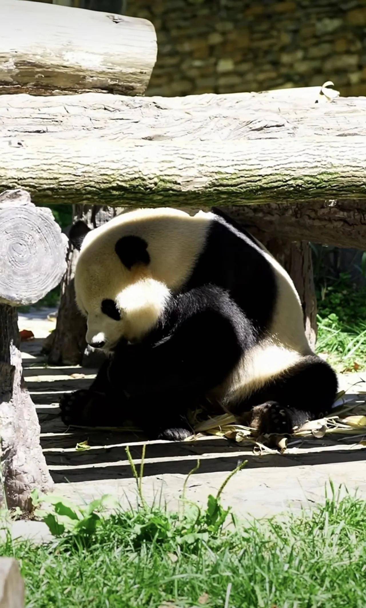大熊猫小奇迹这熊孩子,也是太乖巧了,很会过日子啊!