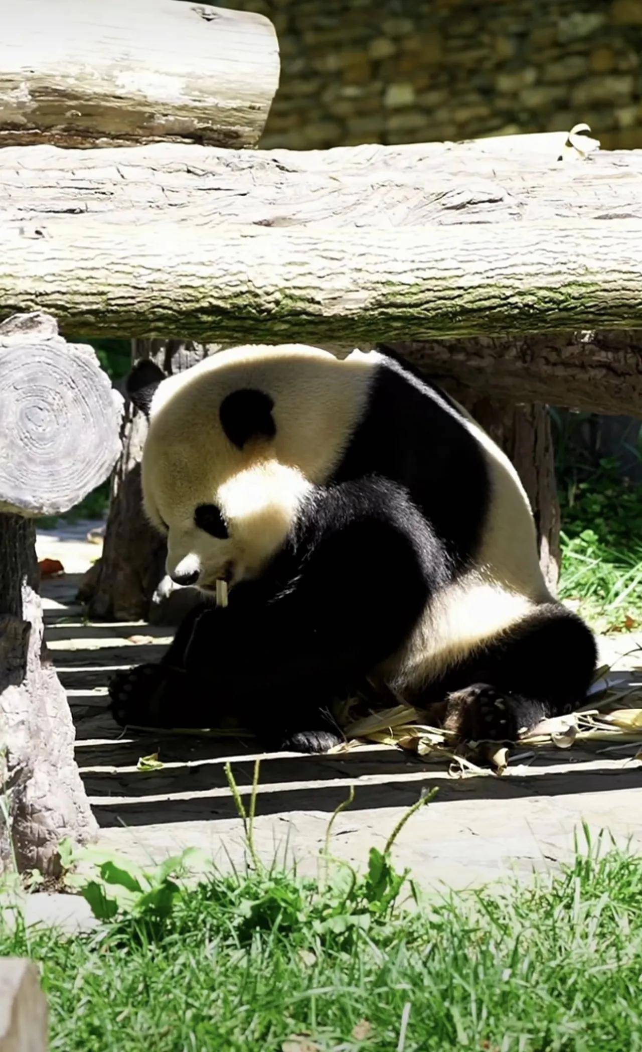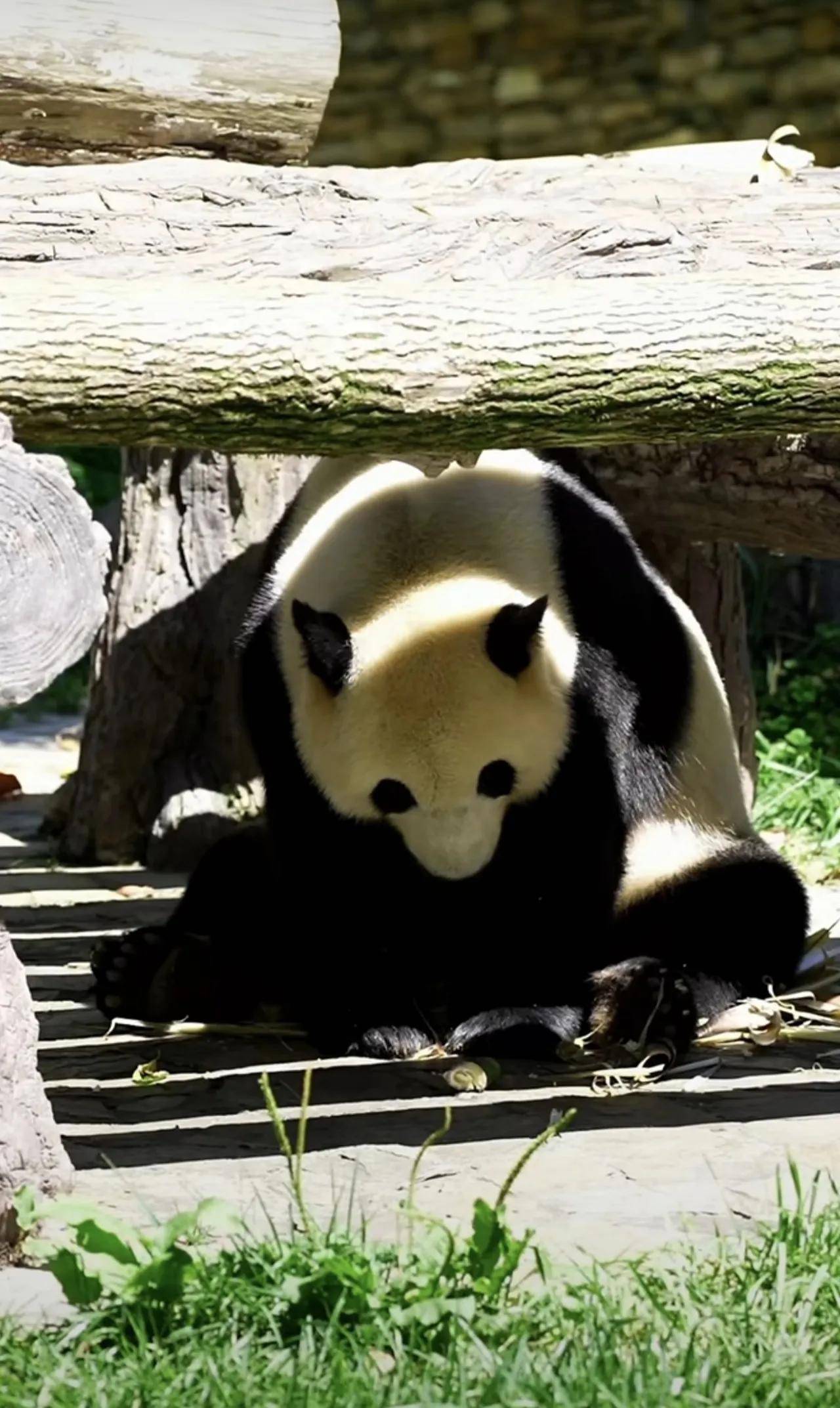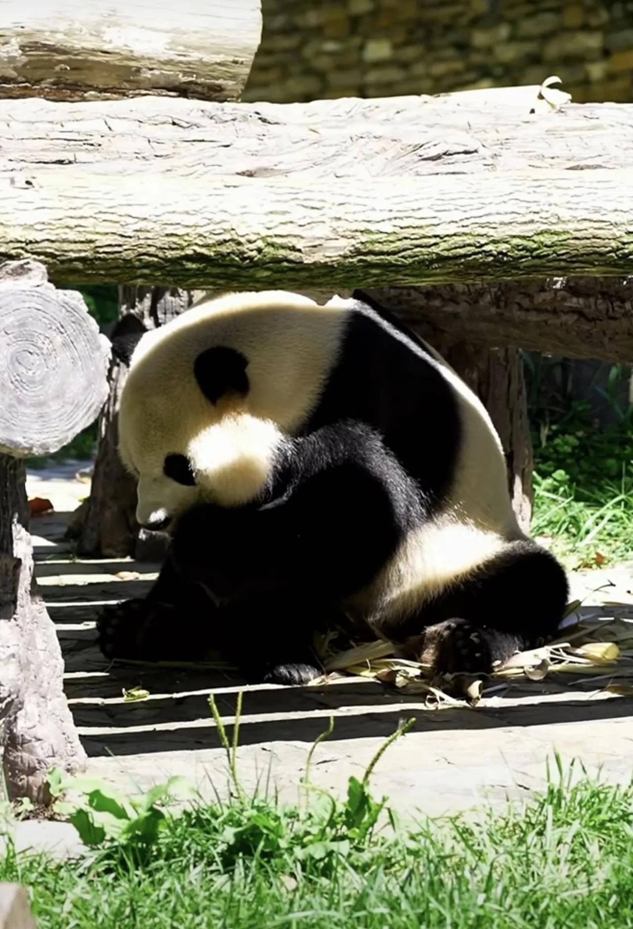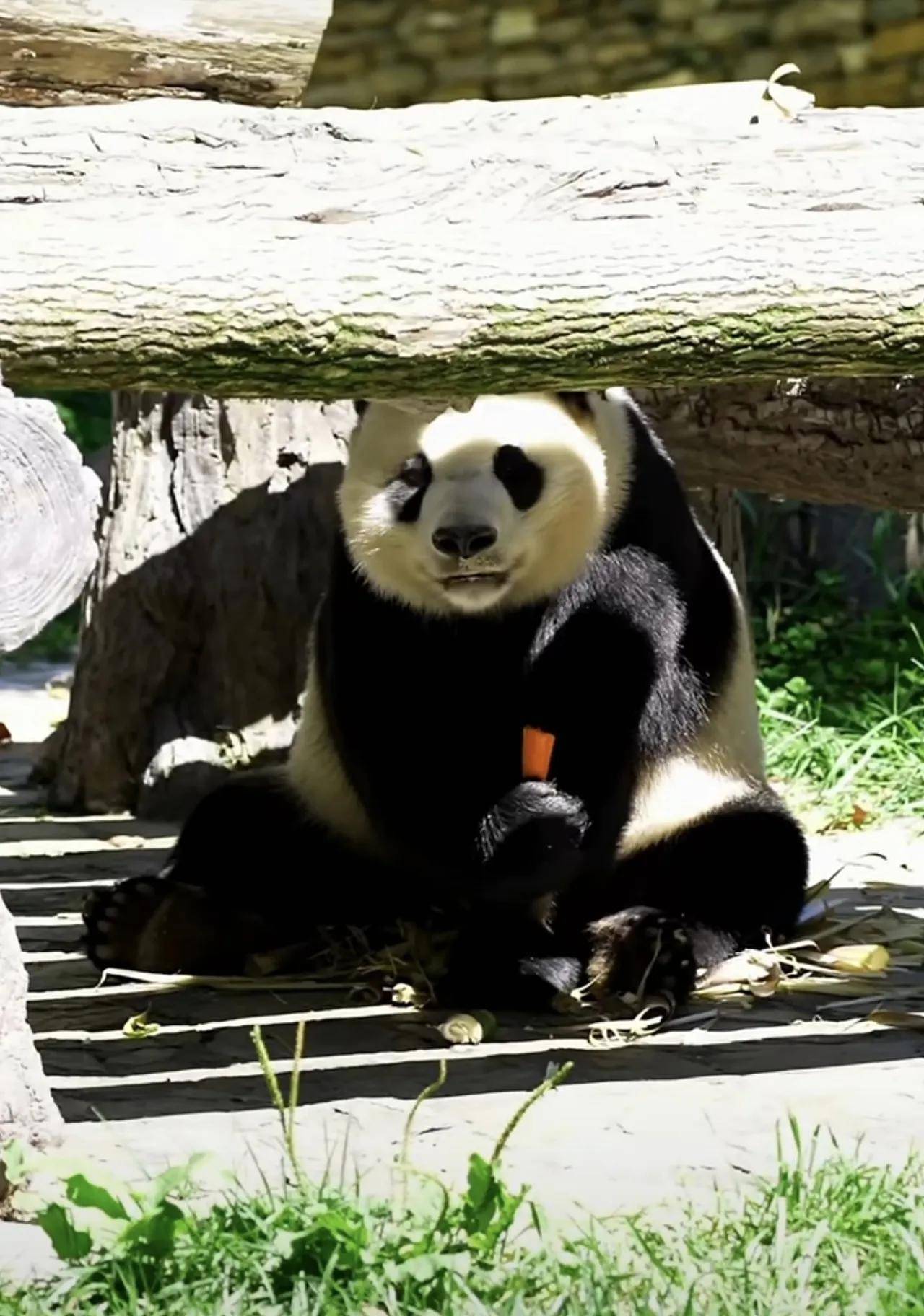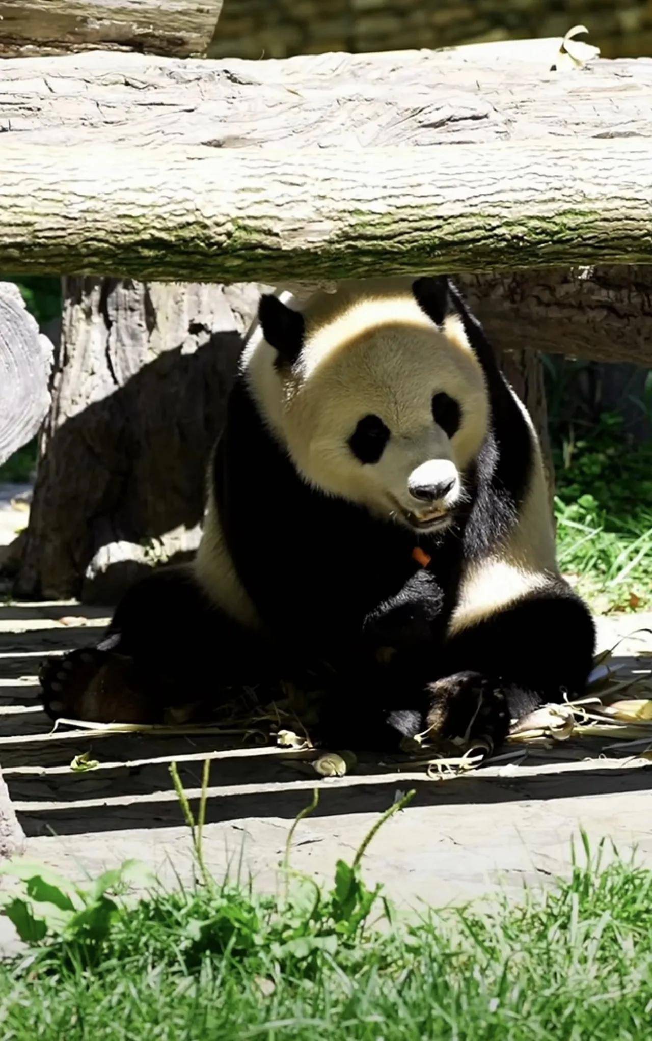 大熊猫小奇迹这熊孩子,也是太乖巧了,很会过日子啊!