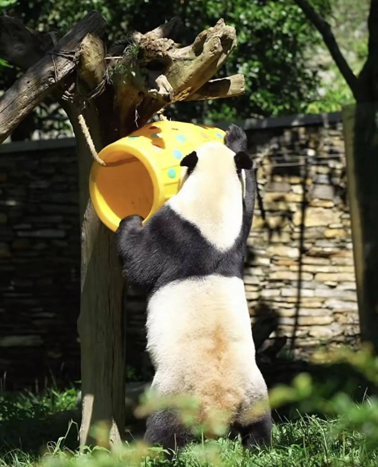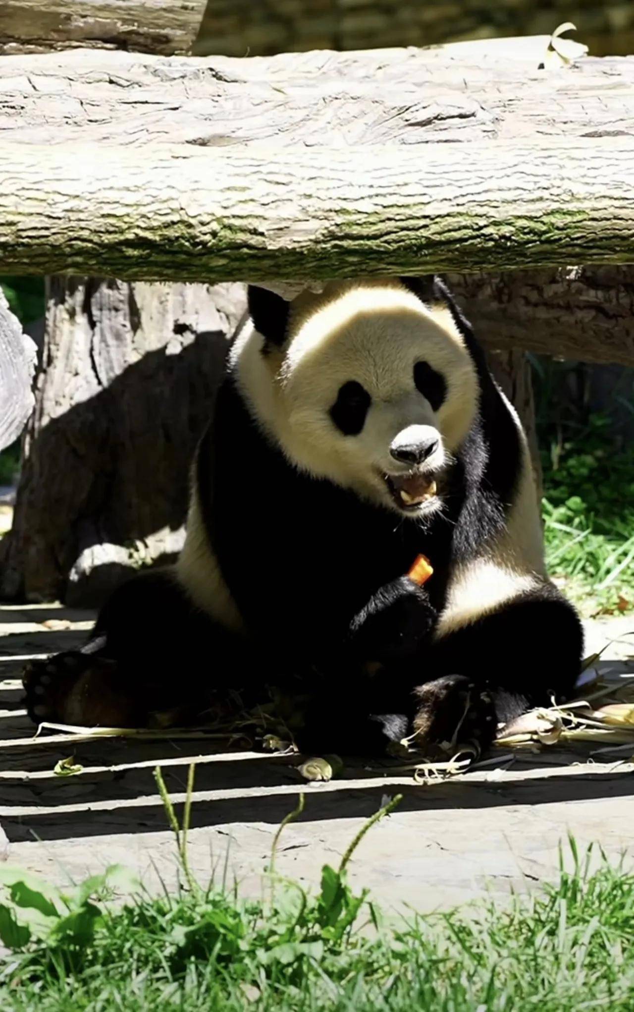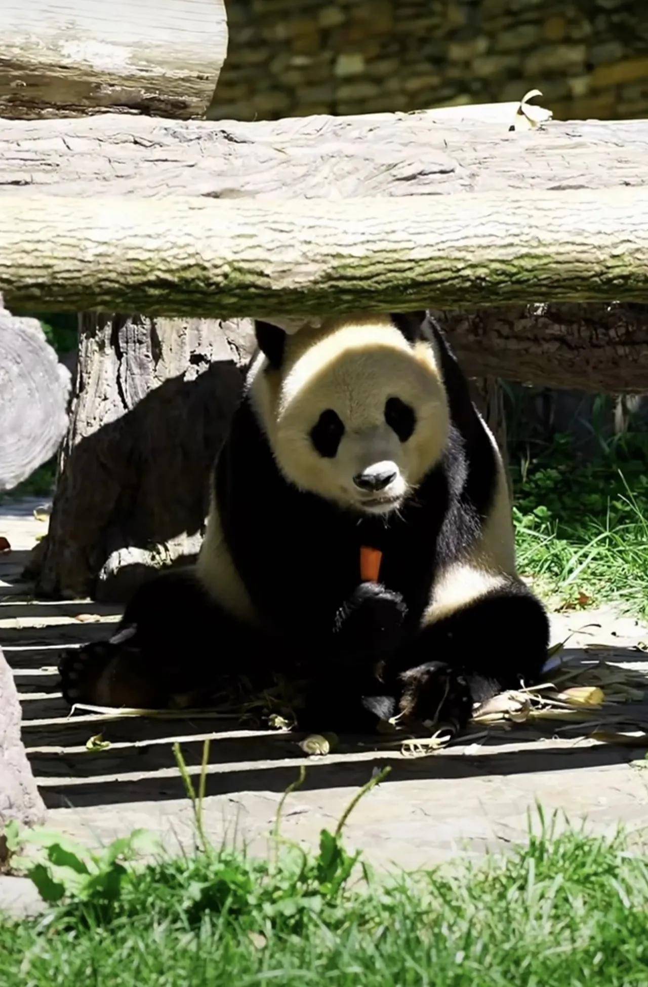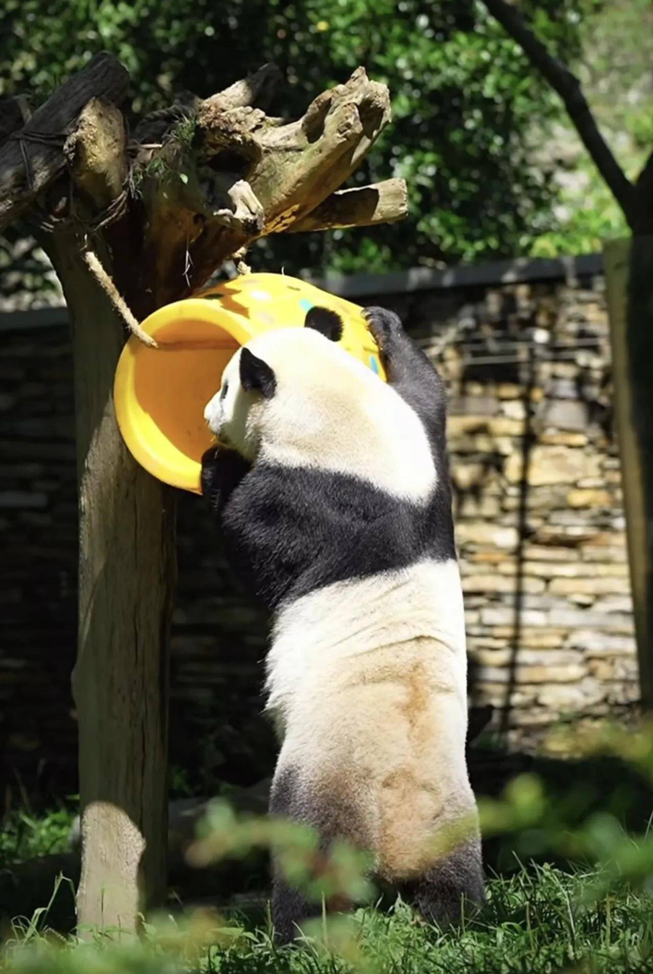 大熊猫小奇迹这熊孩子,也是太乖巧了,很会过日子啊!